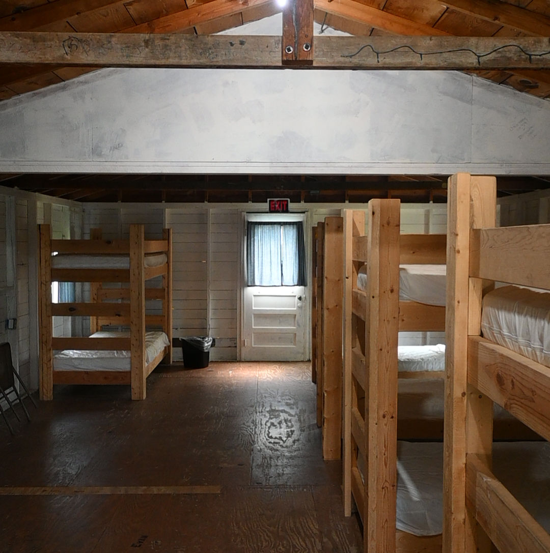 You may bring pets however pets are NOT permitted inside hotel rooms, cabins, bathrooms, or any other camp buildings.