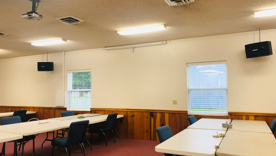 The Learning Center is a year-round meeting space with a warming kitchen and indoor restrooms. This building is 74 feet by 52 feet with a 10-foot ceiling. Set-up of tables and chairs is included with the rental of this facility. The warming kitchen has a pass-through window into the main hall: great for serving! Ping-pong, carpetball, and other games or activities can be held here as well.